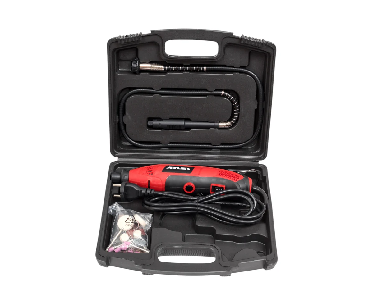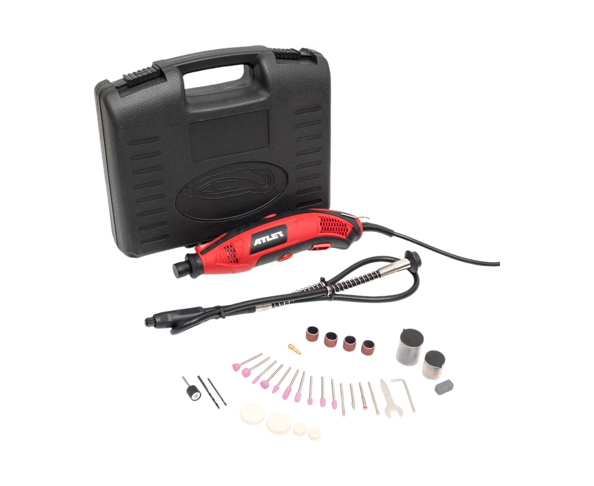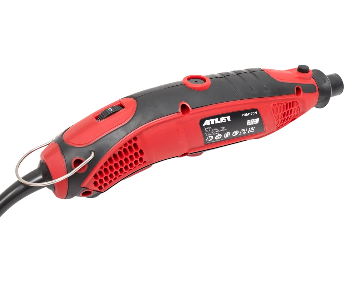 Гравер ATLET мощностью PDM170N 170 Вт с регулируемой скоростью от 10,000 до 35,000 об/мин — это удобный бытовой инструмент, используемый в различных задачах и комплектацией из 86 аксессуаров.